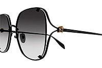 Black (004) Sunglasses with Gray Gradient lenses (AM0366S 004 58) by Alexander McQueen™. Size: 58-18-145, Shape: Butterfly, Material: Metal. BRAND: ALEXANDER MCQUEEN GENDER: FEMALE FRAME TYPE: SUNGLASSES RIM COLOUR: BLACK TEMPLE COLOUR: BLACK LENS COLOUR: GREY MATERIAL: METAL DIMENSION: 58 MM TEMPLE LENGTH: 145 MM